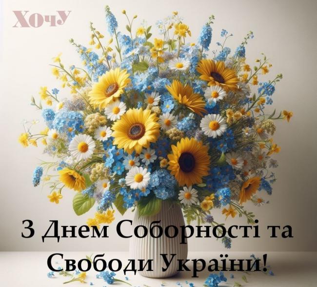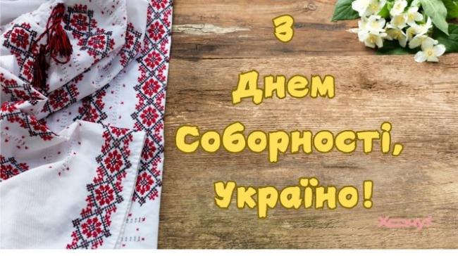 З Днем соборності! Бажаю родинної гармонії, удачі у всіх починаннях, здійснення мрій! Щасливого життя у вільній та мирній Україні!