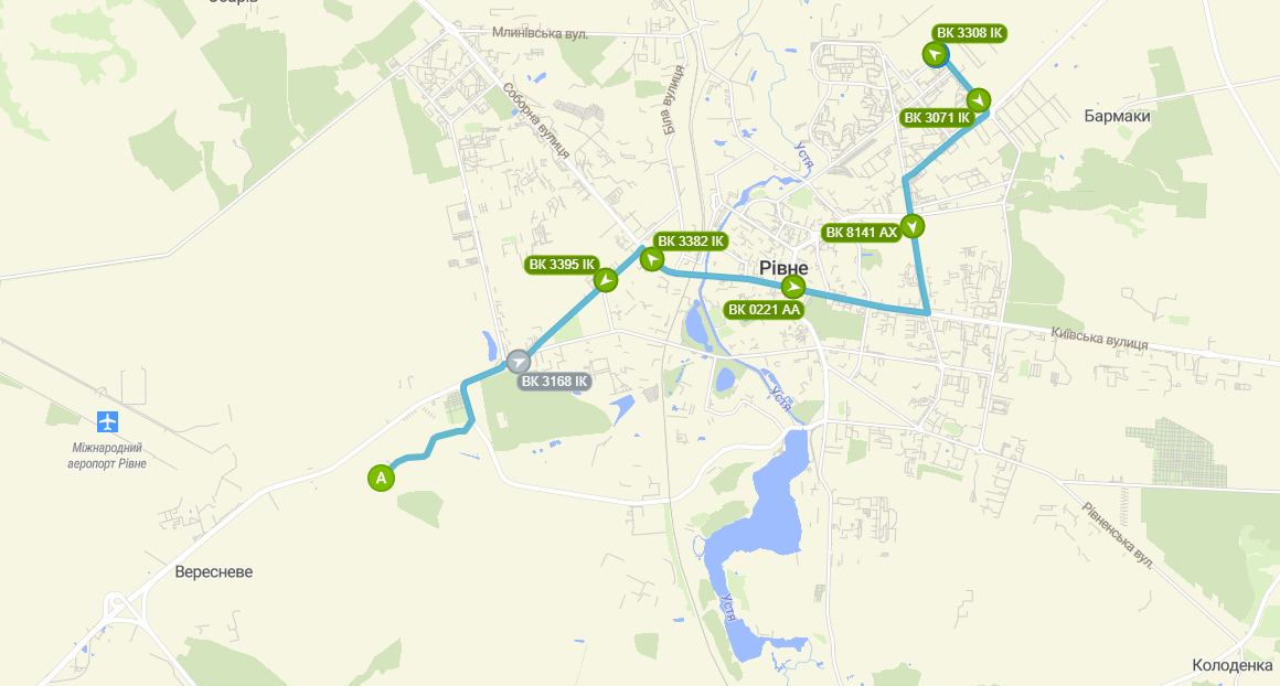 Актуальна схема зупинок маршруту (Тинне – Льонокомбінат)