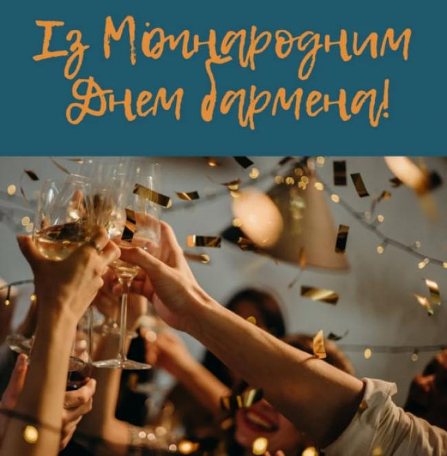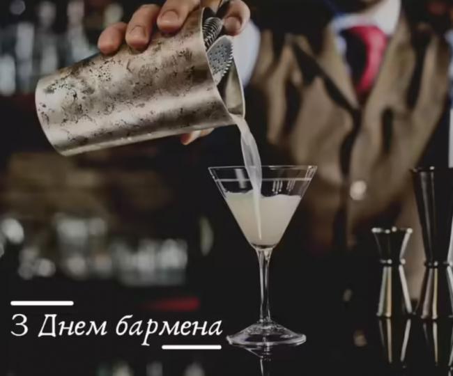 Вітаю з Міжнародним днем бармена. Бажаю зі спритністю рук і без жодного шахрайства створювати справжні шедеври в келихах, фужерах, склянках і стосах, бажаю завжди любити свою роботу і кожен день свого життя зустрічати з відмінним, яскравим, соковитим настроєм.