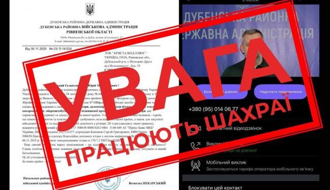 Аферисти від імені голови Дубенської РДА Всеволода Пекарського просять кошти на потреби війська.