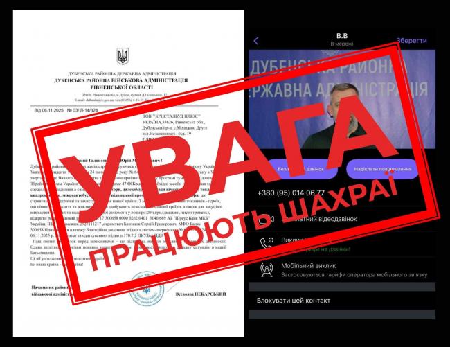 Аферисти від імені голови Дубенської РДА Всеволода Пекарського просять кошти на потреби війська.