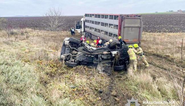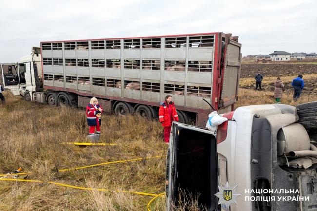 Попередньо встановлено, що водій автомобіля «BMW X5», 55-річний житель Колоденки, виїхав на зустрічну смугу, де допустив зіткнення із вантажівкою «Daf», яка була завантажена тваринами. Від удару обидва транспортні засоби злетіли у кювет, а позашляховик — ще й перекинувся.