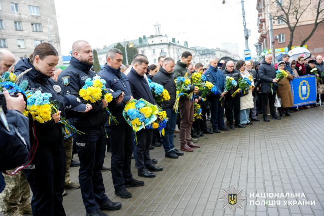 Біля Муралу Героям Небесної Сотні спільно із представниками влади та громадськістю правоохоронці віддали шану патріотам, які віддали своє життя під час Революції Гідності. Їх громадянський подвиг, мужність та свобода стали рушійною силою для українських військових, волонтерів та всього суспільства у протистоянні агресору.