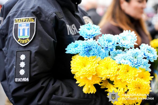 До мітинг-реквієму в Рівному долучилося керівництво поліції області та Рівненського районного управління.