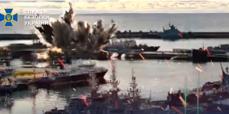 Служба безпеки України заявила про вдалу спецоперацію із знищенням підводного човна в тепер головному порту РФ на Чорному морі в Новоросійську. Операцію виконали спільно із 13 Головним управлінням військової контррозвідки СБУ та Військово-морських сил України.