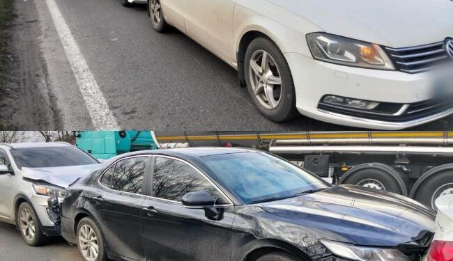 Позавчора зранку патрульним надійшов виклик на лінію 102 про ДТП без травмованих за участю чотирьох авто, яка сталася на автодорозі М-06 Київ — Чоп, поблизу населеного пункту Панталія.