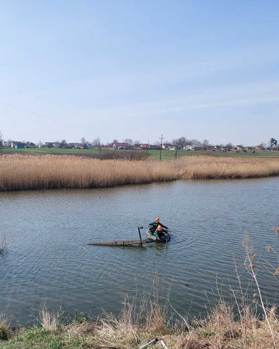 Працівникам Млинівської дільниці довелося діяти в непростих умовах, буквально на воді. Щоб дістатися до опори та виконати всі необхідні маніпуляції, електромонтери використовували плавзасоби. Спочатку опору обережно «поклали», після чого за допомогою лебідки витягнули на берег і перенесли на безпечну відстань від водойми.