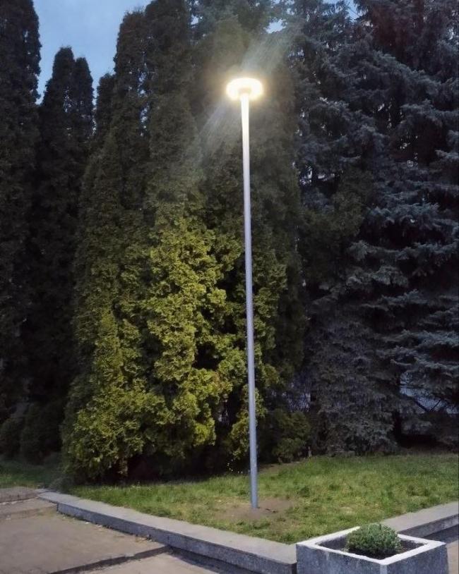 У рамках робіт тут демонтували старі паркові опори і встановили нові сучасні, на яких змонтували світильники із сонячними панелями.