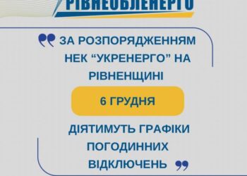 Увага! У зв’язку зі складною ситуацією в енергосистемі держави за командою НЕК «Укренерго» на Рівненщині 06.12.2025 застосовуватимуться графіки погодинних відключень для...