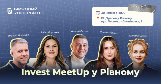 30 квітня Біржовий університет організовує в Рівному Invest Meetup, який дозволить вийти за межі звичних фінансових рішень і почати діяти як інвестор.