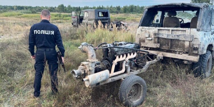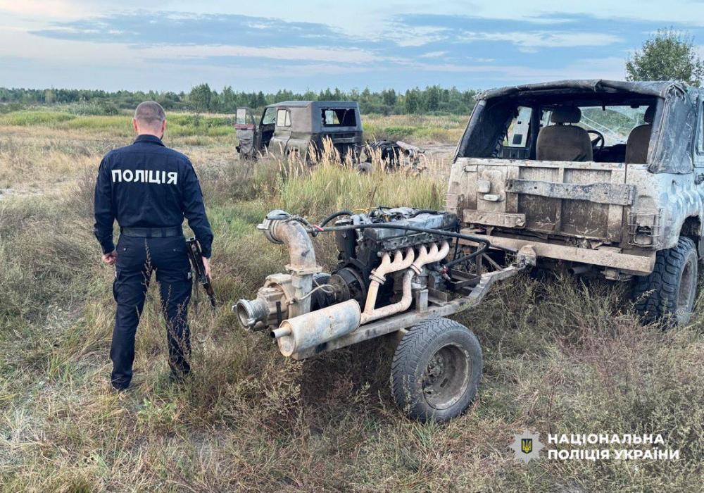 Із місця події правоохоронці вилучили два автомобілі «УАЗ», три мотопомпи кустарного виробництва, два мотоцикли, 27 металевих тичок, два пожежні рукави, сачки, шрайбер та бурштин.