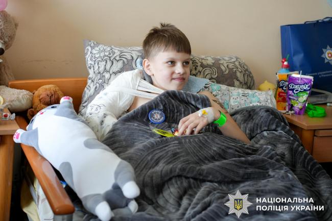 Десятирічний Владислав нині проходить лікування у стаціонарі: переніс декілька операцій та готується до наступної. Поліцейські вирішили підтримати хлопчика і його родину — навідалися до нього в лікарню.