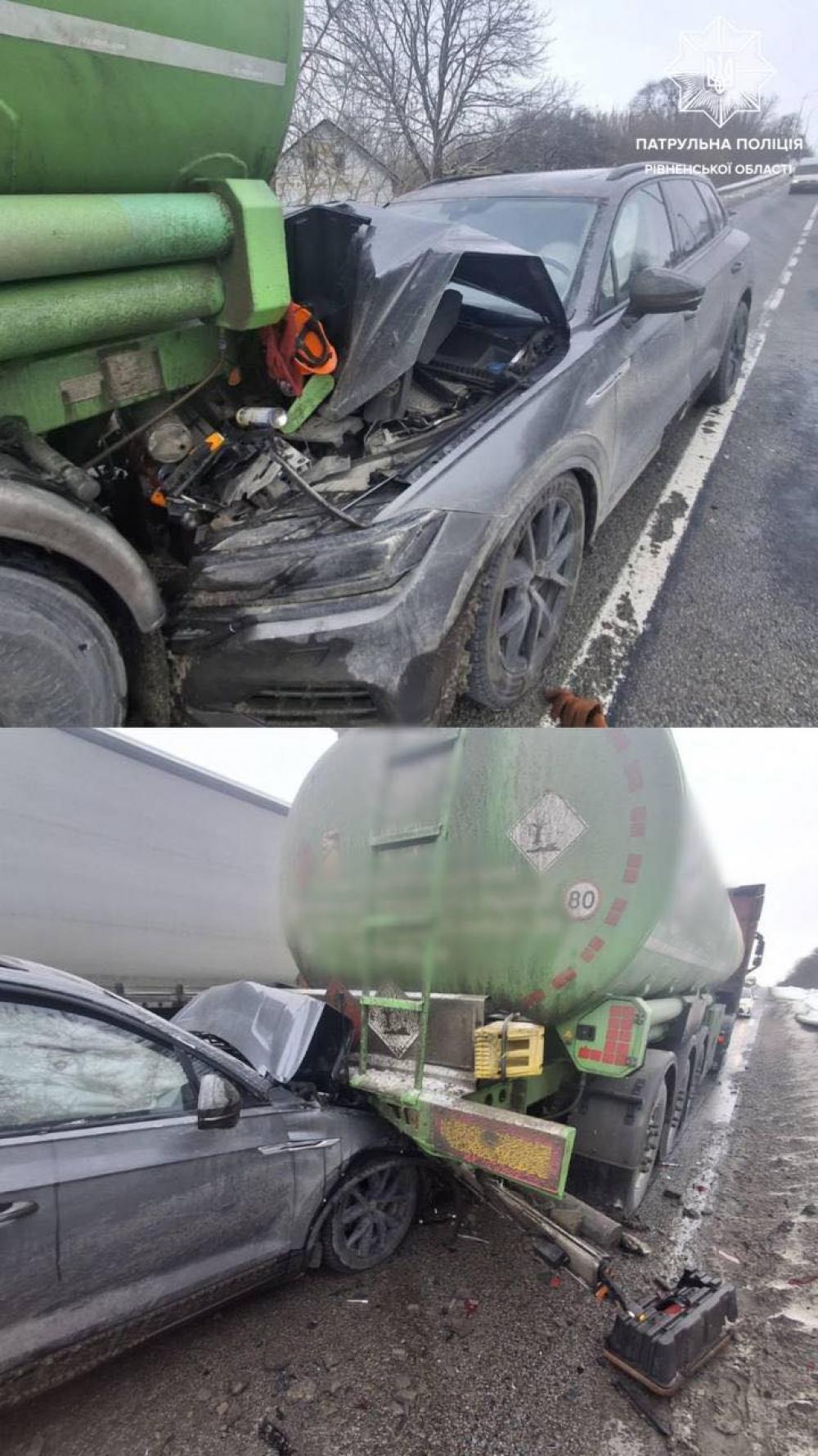 На місці події патрульні встановили, що 38-річний водій автомобіля Volkswagen не вибрав безпечної швидкості руху та не дотримався дистанції, унаслідок чого в’їхав у бензовоз Volvo з напівпричепом. Пального у бензовозі на момент скоєння ДТП — не було.