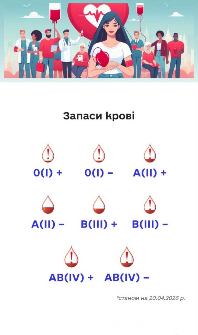 – Зверніть увагу на цю інфографіку. Вона показує вкрай критичні запаси майже усіх груп донорської крові на Рівненщині, станом на 20 квітня.