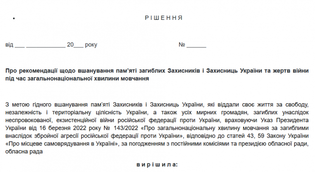 Як зазначається, проєкт рішення підготовлено з метою гідного вшанування пам’яті Захисників і Захисниць України, а також мирних громадян, які загинули внаслідок збройної агресії російської федерації проти України.