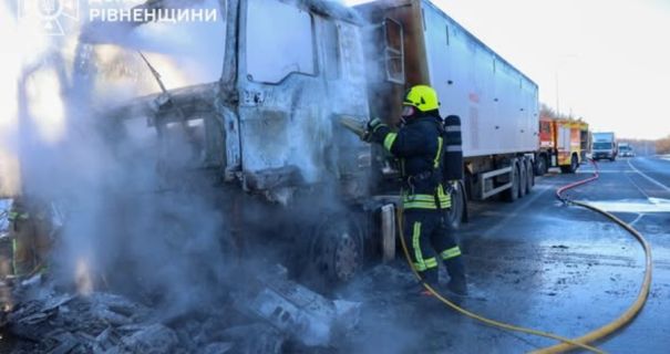 Сьогодні, 21 січня, на автодорозі М-06 “Київ-Чоп” поблизу села Зелений Гай у Дубенському районі Рівненської області загорівся вантажний автомобіль