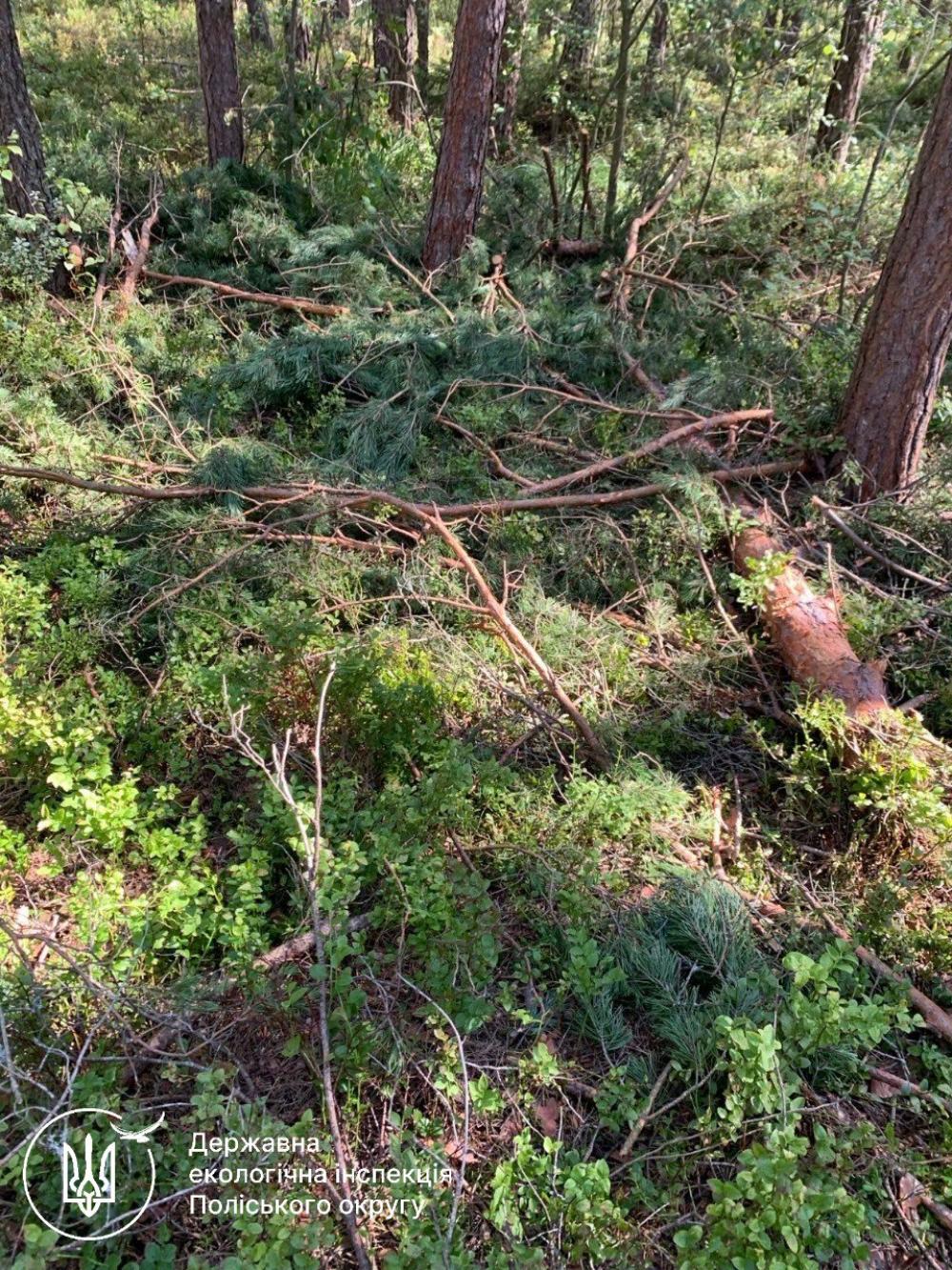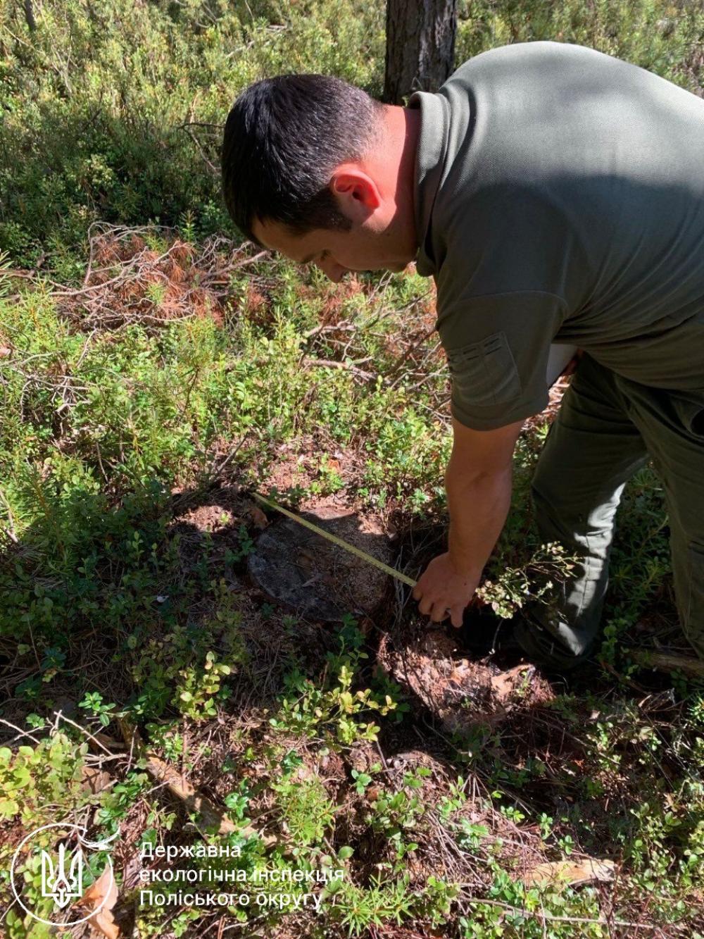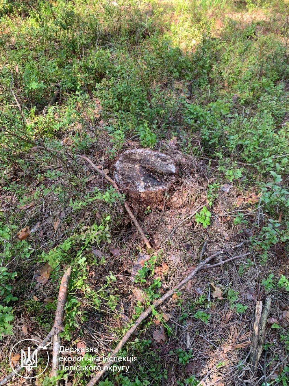 Під час заходів виявлено незаконну рубку 59 дерев породи сосна на території Воронківського лісництва Рафалівського надлісництва Філії «Поліський лісовий офіс» ДП «Ліси України».