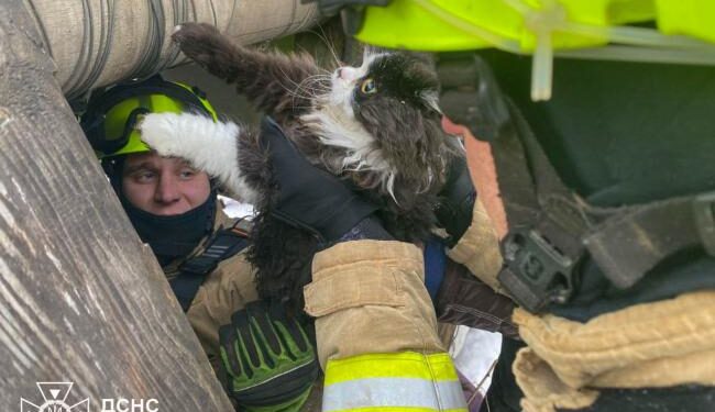 За допомогою спецспорядження тварину швидко та безпечно підняли на поверхню. На щастя, кіт не постраждав і вже вдома з вдячними господарями.