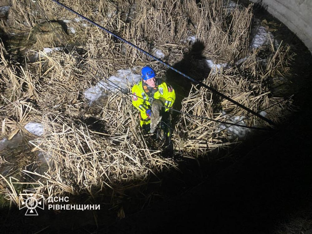 За допомогою спецобладнання бійці ДСНС дістали налякану тварину та, переконавшись, що вона не травмована, відпустили на волю.