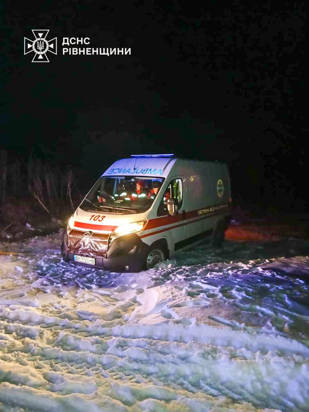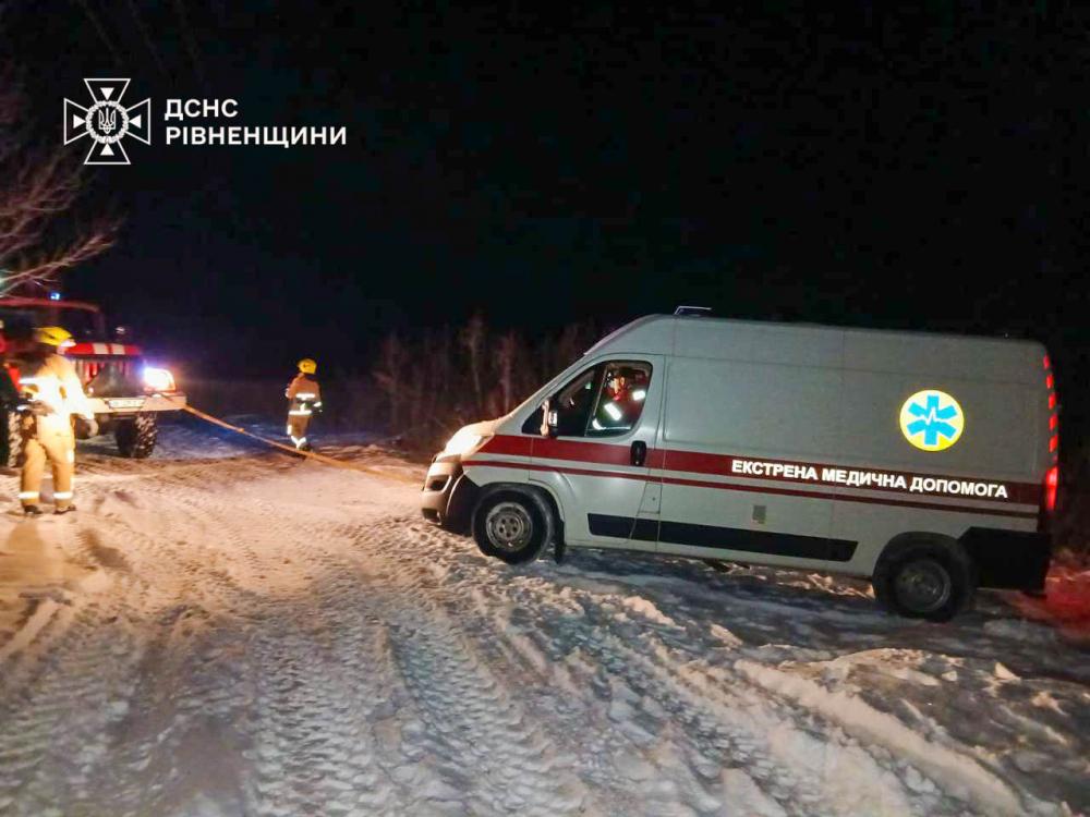 Вчора, о 22:36 допомога знадобилася медикам у с. Дерев’яне Зорянської Територіальної громади. Через замети автомобіль швидкої медичної допомоги, що поспішав на виклик, не міг самостійно продовжити рух.