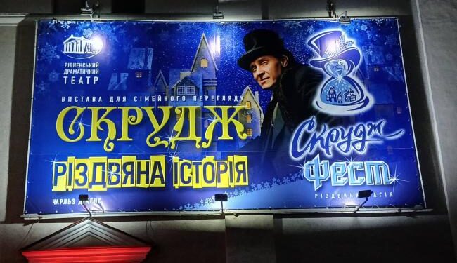 14, 20, 21, 27, 28 грудня, о 16:00 на великій сцені драмтеатру покажуть виставу рівненського театру "Скрудж. Різдвяна історія".