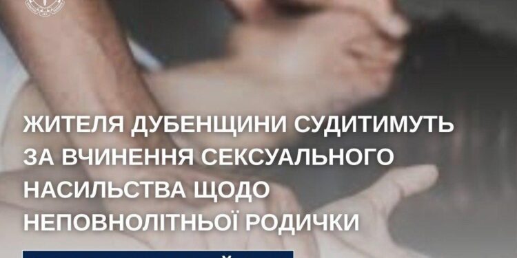 Прокурори Дубенської окружної прокуратури скерували до суду обвинувальний акт, стосовно 25-річного чоловіка, якому інкримінують вчинення сексуального злочину щодо неповнолітньої двоюрідної сестри.