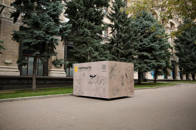 Це гігантський pop-up у вигляді поштової коробки розміром майже 3х3 метри, що стане символом допомоги тим, хто не може попросити про неї сам. Інсталяція стала кульмінацією спільного проєкту Укрпошти та UAnimals, у межах якого компанія ще в серпні оновила дизайн усіх посилкових коробок. Відтоді на них зображені тварини, які постраждали від війни, включно з видами, занесеними до Червоної книги.
