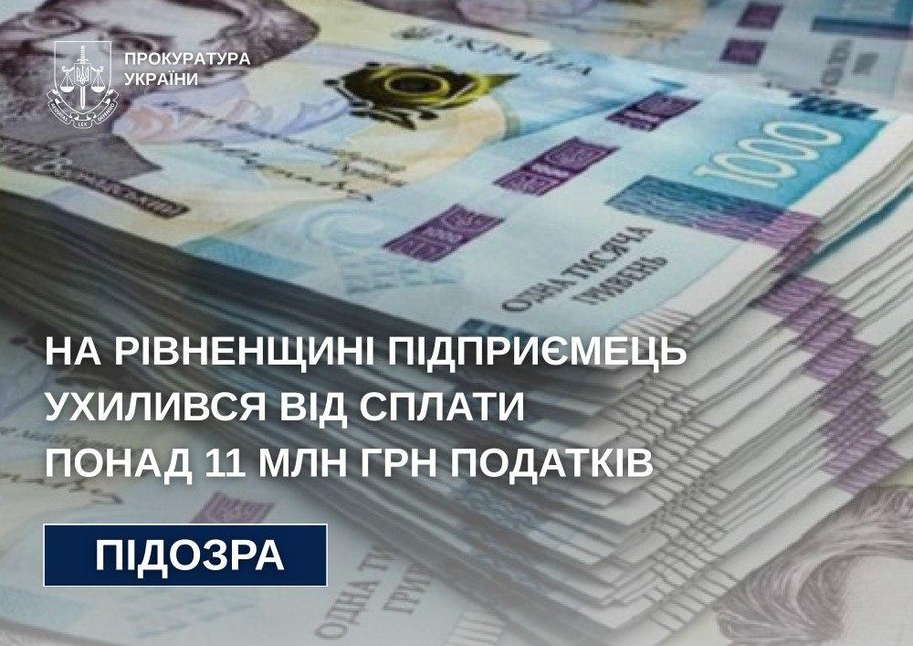 Слідчі слідчого управління за процесуального керівництва Рівненської обласної прокуратури повідомили підприємцю про підозру у вчинені злочину, передбаченого ч.3 ст.212 КК України (умисне ухилення від сплати податків, що входять в систему оподаткування, введених у встановленому законом порядку, вчинене службовою особою підприємства, що призвело до фактичного ненадходження до бюджету коштів в особливо великих розмірах).
