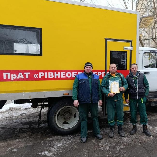 Млинівська бригада Рівнеобленерго отримала подяку за відновлення електропостачання киянам у складний для столиці період.