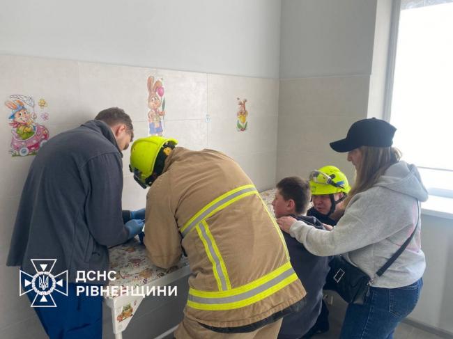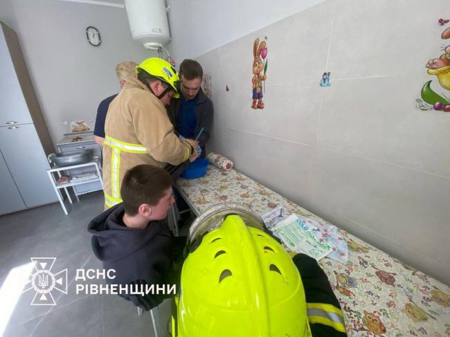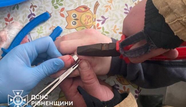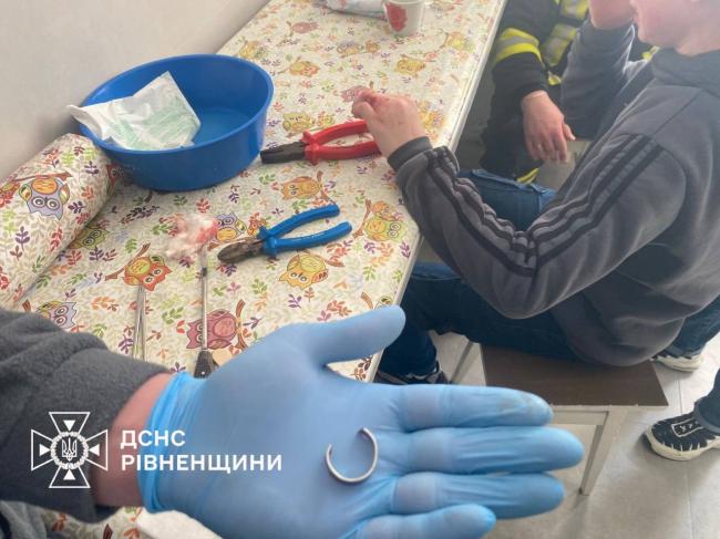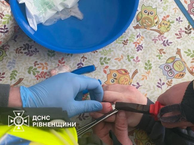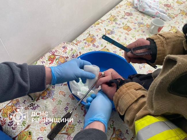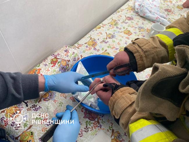 Рятувальники Рівненщини отримали виклик з обласної дитячої лікарні. До медиків звернувся 15-річний юнак із сильним набряком пальця, на якому застрягло кільце. Оскільки спроби лікарів зняти прикрасу були марними, знадобилася допомога фахівців ДСНС.