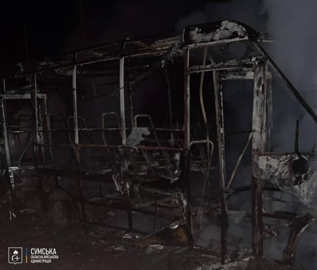 Сам мікроавтобус, що рухався в бік Сум, внаслідок обстрілу згорів ущент.