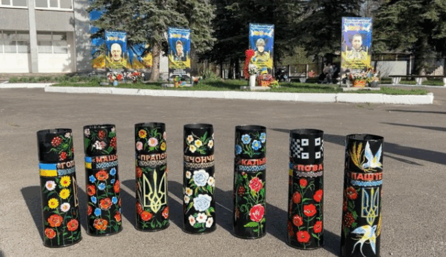 Розписані гільзи із позивними військових встановили біля портретів загиблих на центральній площі Канонич, що на півночі Рівненщини, повідомляє Суспільне. Їх намалював місцевий художник-аматор Микола Воробей. Вони слугуватимуть вазами для квітів.