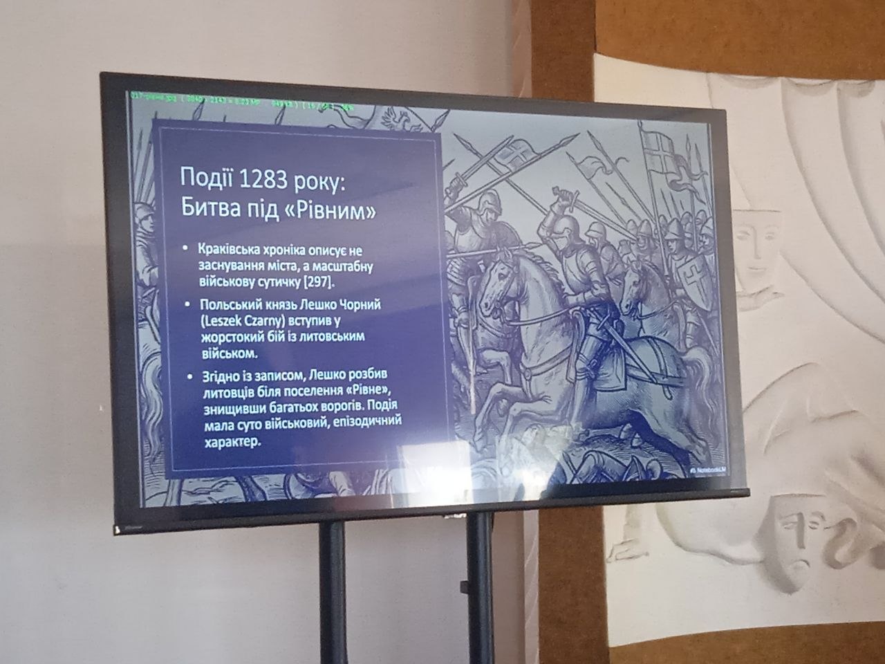 – Я хочу одразу зазначити, що це не була фантазія Гурія Бухала, як зараз про це розповідають. Це була фантазія перших польських дослідників, які почали збирати інформацію в енциклопедію. Це були перші енциклопедії XIX століття. У цій енциклопедії дослідники написали, що є згадка про те, що польський князь Лешко Чорний вступив у жорстокий бій із литовським військом біля Рівного. Але там не зовсім зрозуміло, чи це було поселення, чи це була якась рівна територія, яка там для них була зрозуміла на той час.