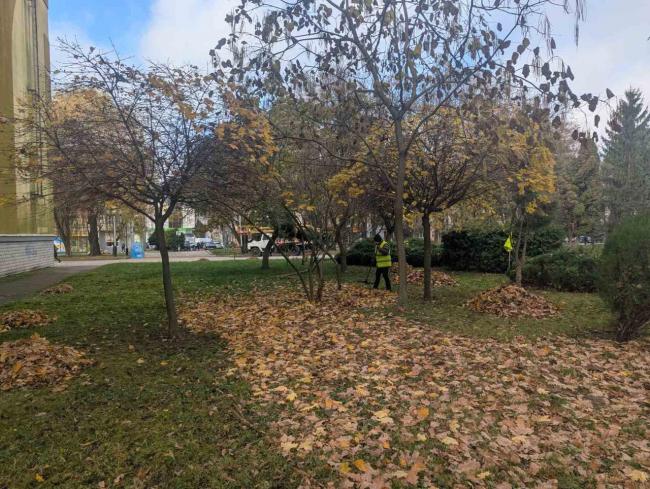 Працівники Тресту зеленого господарства працюють на вулиці Поповича. Туди було завезено грунт та розкидано під деревами.