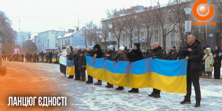 З нагоди Дня Соборності у Рівному створили «Ланцюг єдності». Саме 22 січня у 1919 році проголосили Акт злуки УНР та ЗУНР. Десятки рівнян зібралися на майдані Незалежності, аби відзначити 107-му річницю свята.