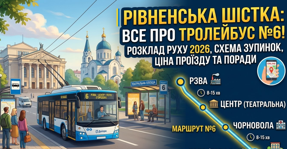 Тролейбус 6 Рівне. Розклад руху, схема зупинок та ціна проїзду 2026