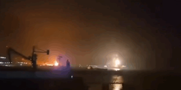 An intense video of the attack on the Novorossiysk filmed by one of the crew members of a foreign vessel that was in the port during the air raid. https://t.co/e0RlplA8ZE pic.twitter.com/E5w5g3MxoX