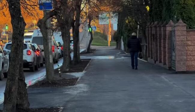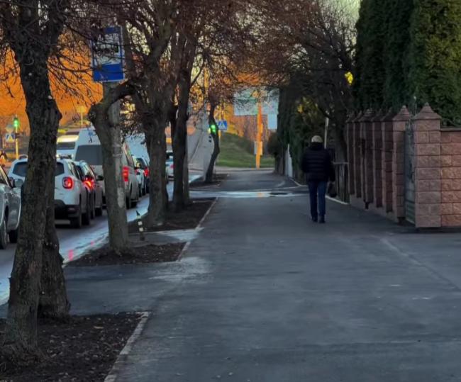 Як зазначається, першим прикладом стала вулиця Поповича, де під час ремонтних робіт тротуар умовно поділили на прохідну частину та окрему зелену зону.