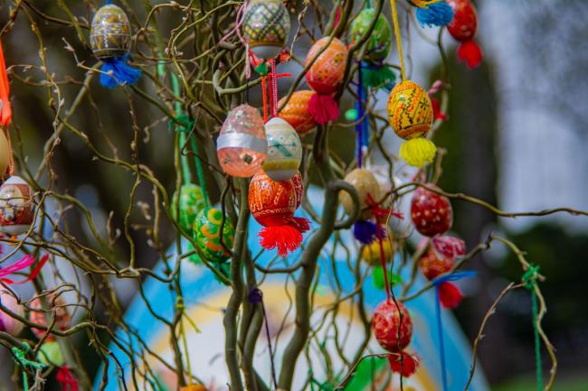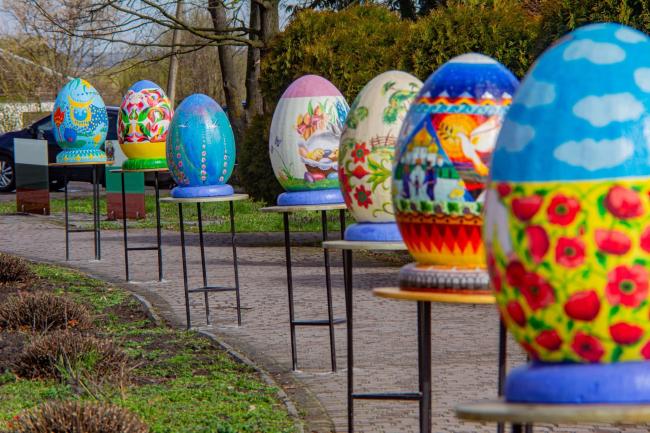 Напередодні Великодня в місті на традиційній локації, вздовж алеї поблизу Дубенського замку, попри дощову погоду, засяяли барвисті писанки.