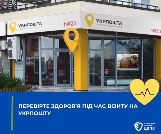 7 квітня до Всесвітнього дня здоров'я у відділеннях «Укрпошти» на Рівненщині можна буде не лише отримати посилки чи оплатити рахунки, а й подбати про своє здоров’я.