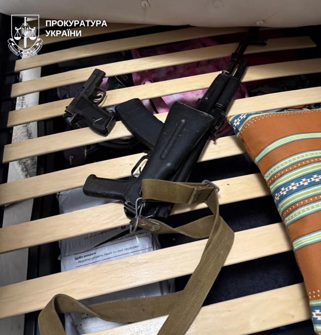 Крім того, в ході проведення санкціонованого обшуку вдома у підозрюваного правоохоронці виявили арсенал зброї, зокрема автомат «АК-74», пістолет