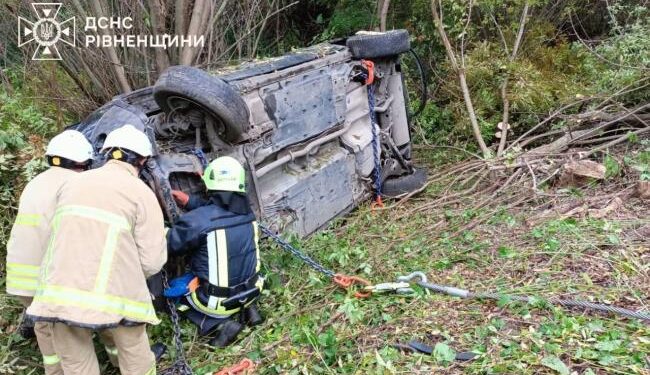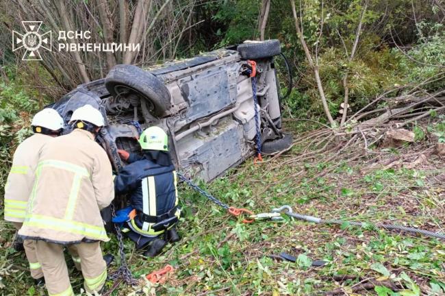 Прибувши на місце виклику рятувальники побачили перевернутий у кюветі легковий автомобіль марки Nissan Qashqai. З метою недопущення загоряння транспортного засобу, від’єднали клему акумуляторної батареї та за допомогою лебідки дістали автомобіль з кювету.