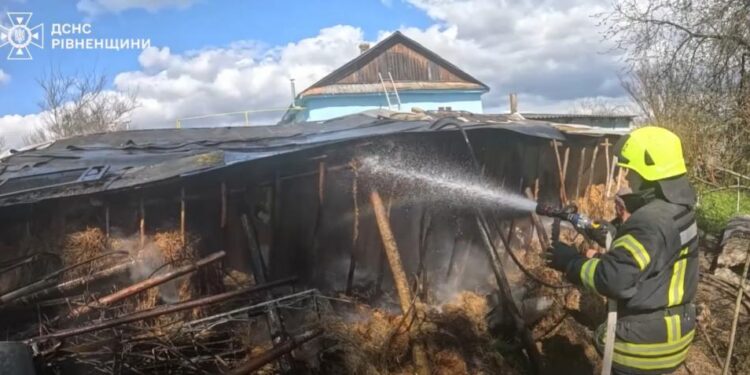 Вчора о 13:54 на спецлінію «101» надійшло повідомлення про загоряння господарської будівлі в селі Рубче по вул. Центральній Рівненського району.