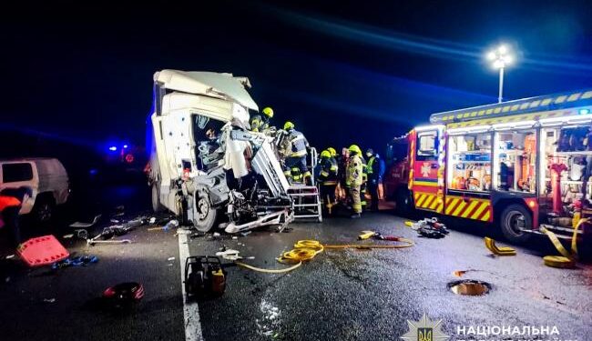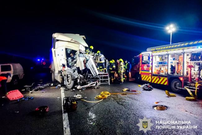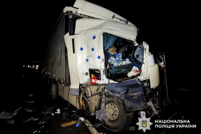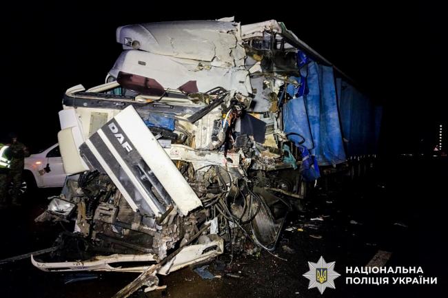 Від удару «DAF» із напівпричепом відкинуло на зустрічну смугу, де вона зіткнулася із такою ж вантажівкою, водієм якої був 31-річний житель Житомирщини.