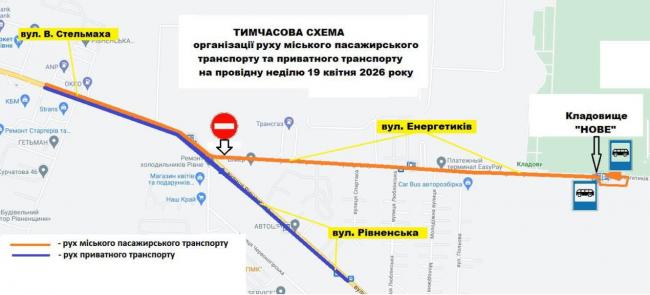 Зокрема, 18 квітня 2026 року з 06:00 до 18:00 та 19 квітня 2026 року з 06:00 до 15:00 буде обмежено проїзд приватного автомобільного транспорту до кладовища «Нове». Виняток становитиме громадський транспорт.
