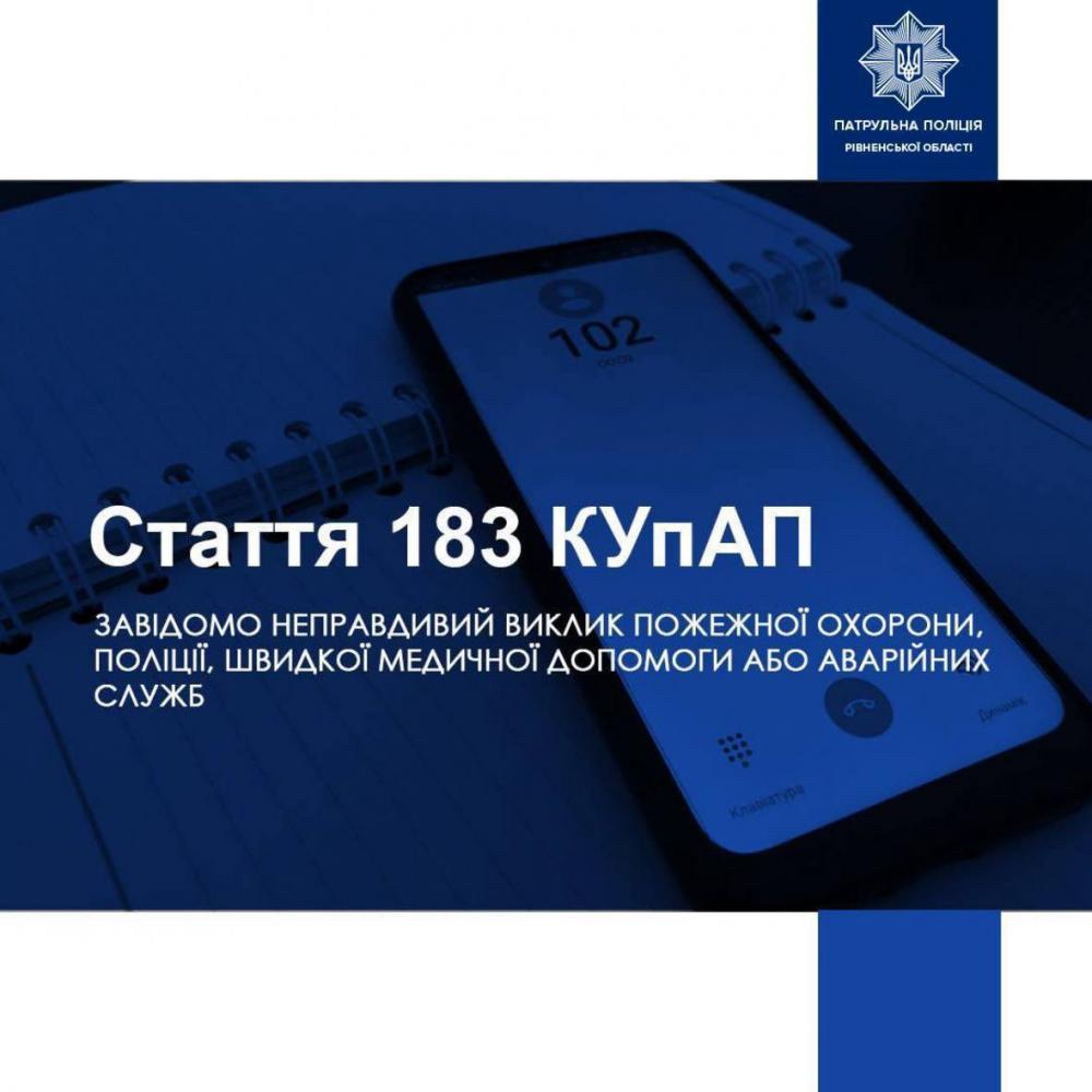Патрульні роз’яснили громадянці, що за такі дії передбачена відповідальність та винесли на неї постанову за ст. 183 (Завідомо неправдивий виклик спеціальних служб) КУпАП.