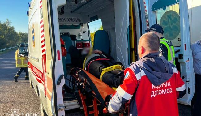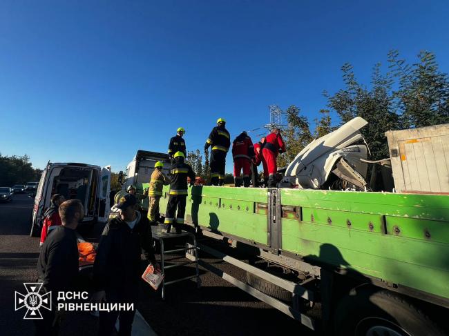Прибувши на місце виклику, рятувальники встановили, що у результаті зіткнення в кабіні вантажівки DAF було затиснуто водія. За допомогою спеціального обладнання вони деблокували потерпілого та передали його медикам. Також вогнеборці відключили акумуляторні батареї транспортних засобів, аби запобігти займанням.