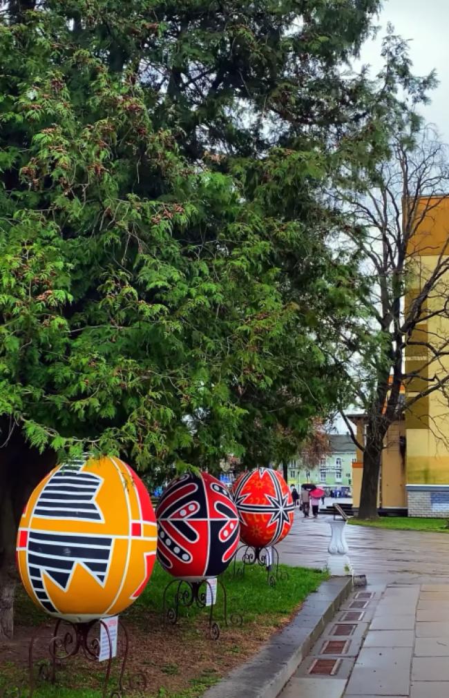 Поки дерева лише готуються до справжнього цвіту, центр нашого міста вже наповнився барвами. За Кінопалацом «Україна», поблизу алеї імені Чайки, встановили 49 писанок.