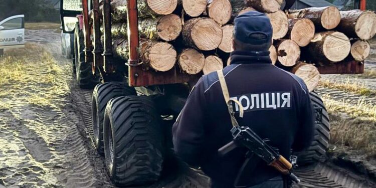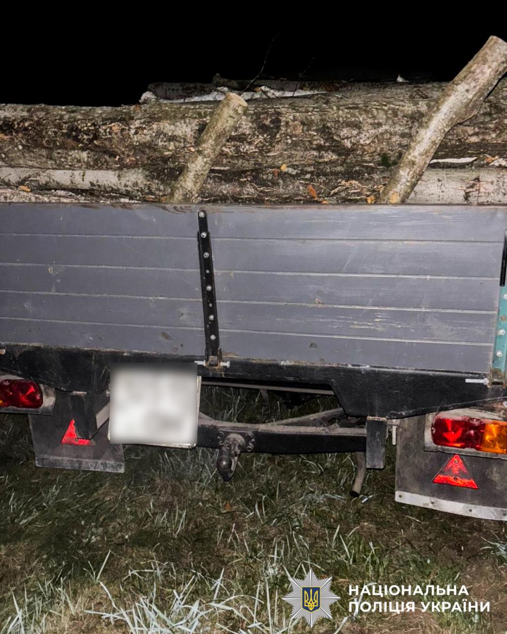 Транспортні засоби та деревина вилучені. Також поліцейські встановили місця незаконних порубок.