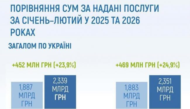 - лютий 2025 — 70,29 млн грн → лютий 2026 — 86,65 млн грн.